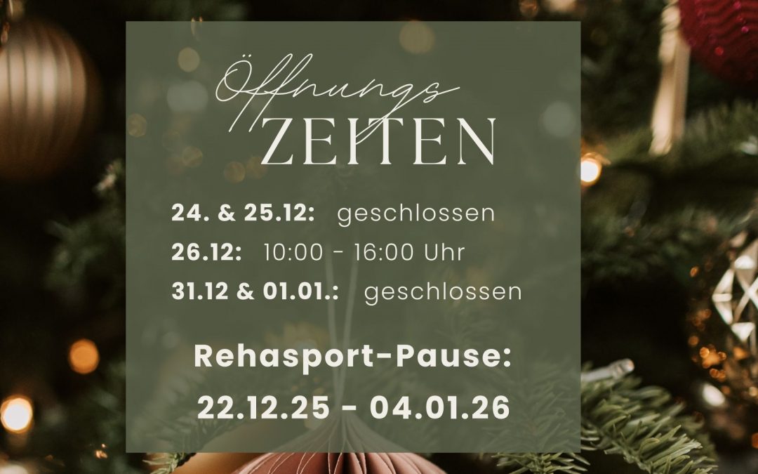 Der Rehasport pausiert vom 22. Dezember bis 04. Januar.
